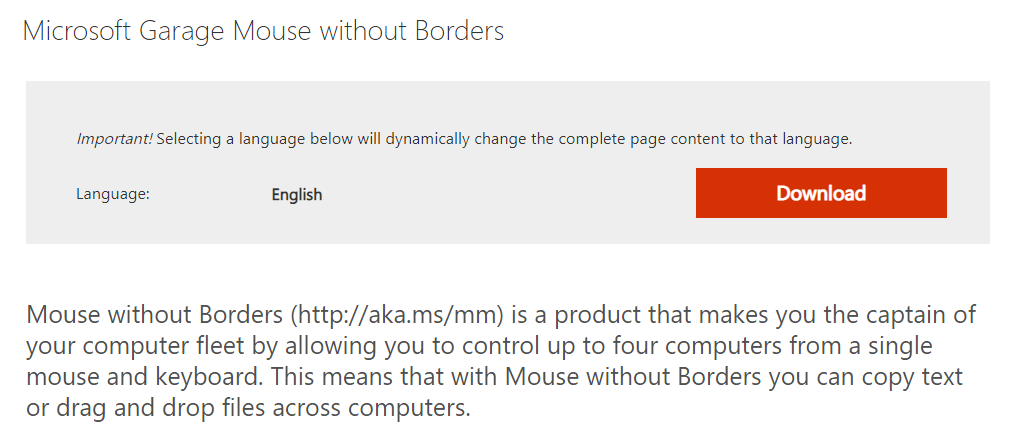 Mouse without Borders (http://aka.ms/mm) is a product that makes you the captain of your computer fleet by allowing you to control up to four computers from a single mouse and keyboard. This means that with Mouse without Borders you can copy text or drag a