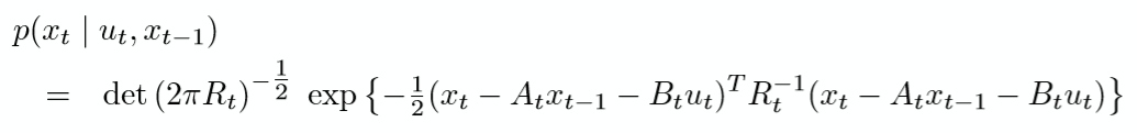 • Mean of the posterior state is given by Atxt-1+Btut and the covariance Rt