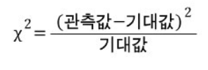 - (관측값 - 기대값) 을 제곱하여 기대값으로 나누면 각 범주의 카이스퀘어 값이 된다