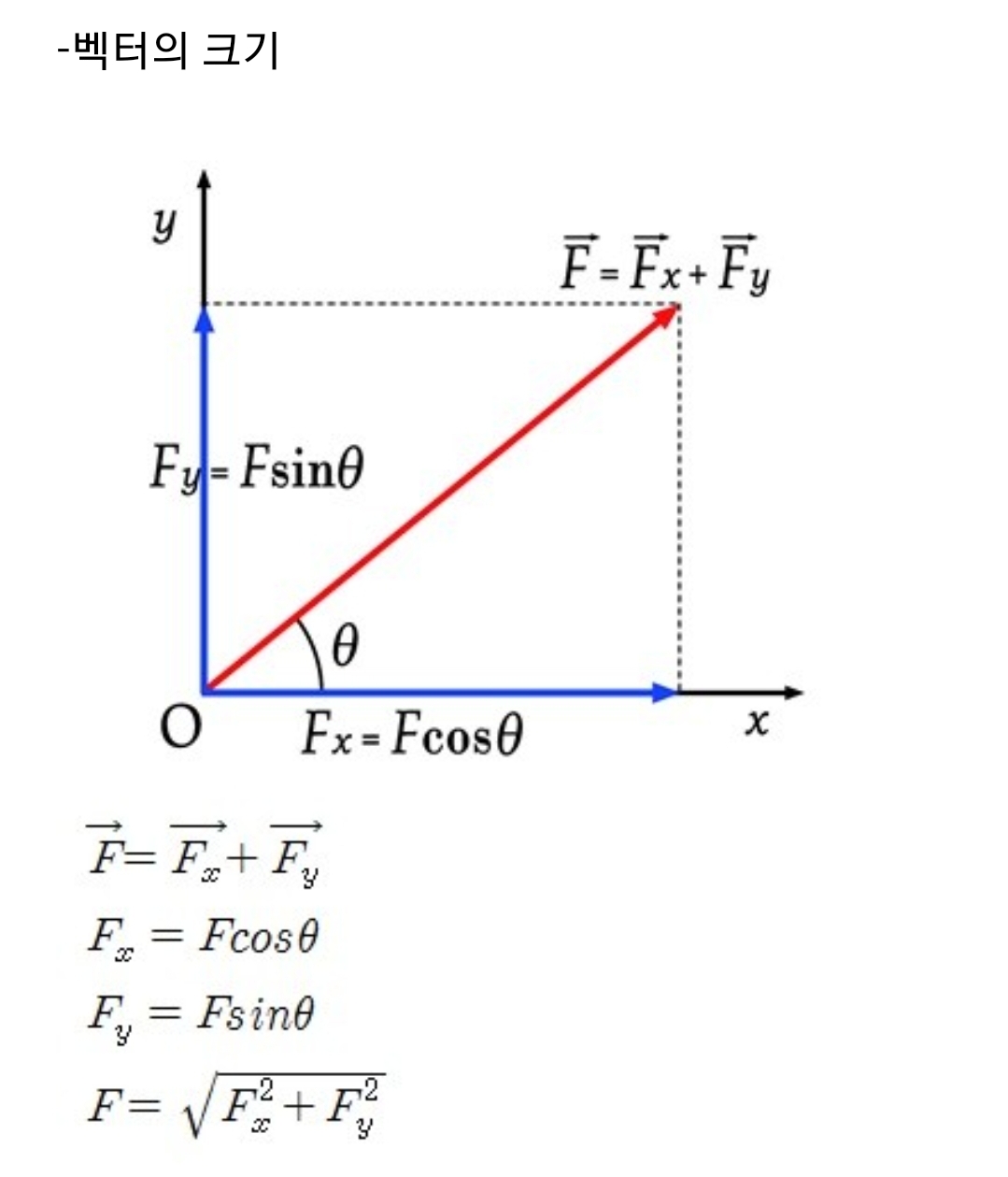- 벡터(vector)량 : 크기와 방향으로 표현하는 물리량