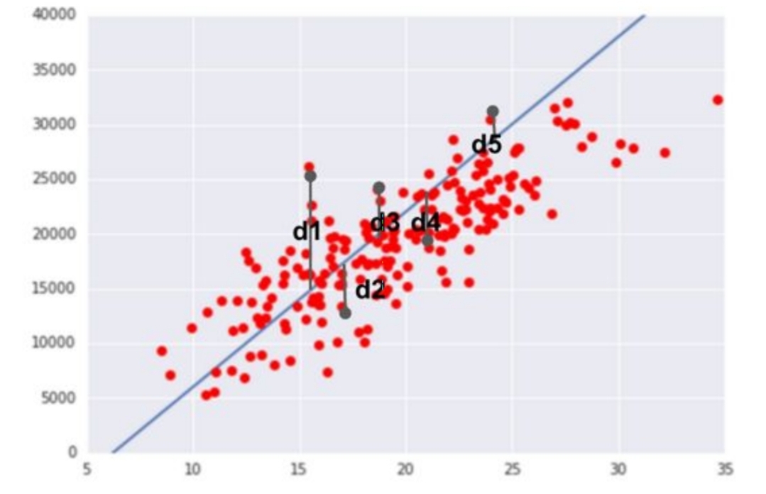 실제 값에서 그래프의 값까지 차이가 가장 작은 값을 구하고자 하는 것이다. 아래 그림을 보자,