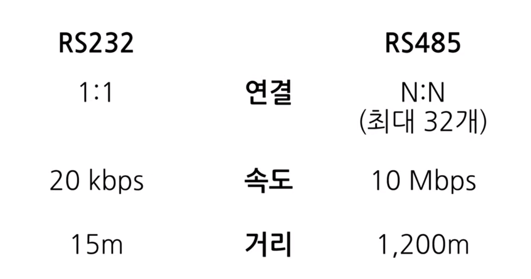 rs485 는 N:N bus 로 연결 되어서 건설현장이나 공장에서 많이 사용 됨