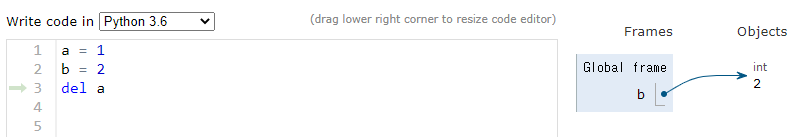 a = 1 이라는 명령을 다시 실행하게 되면, Objects 에 1 이 할당되면서 위에 int 를 확인 할 수 있다