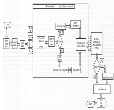 The approach uses a FIFO queue for each pixel in a video frame as an essential element with applying processing method.