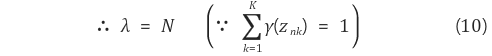 J(X;θ,λ)J(X;θ,λ)를 πkπk에 대해 편미분하면 다음과 같이 λλ를 계산할 수 있다.