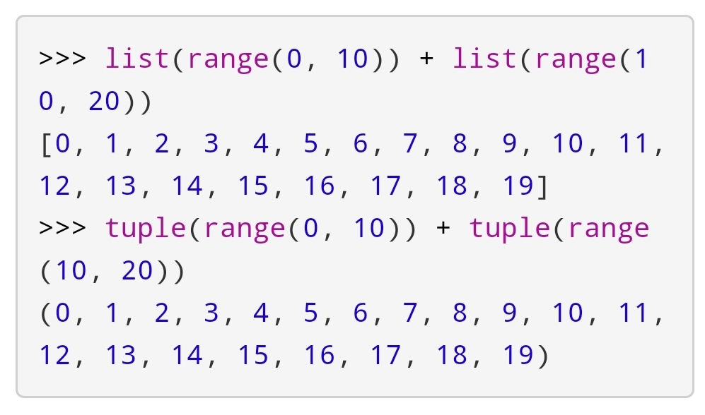 시퀀스 객체는 + 연산자를 사용하여 객체를 서로 연결하여 새 객체를 만들 수 있습니다.