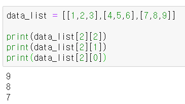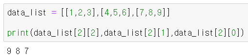 연습1: 위의 2차원 배열에서 9, 8, 7 을 순서대로 출력해보기