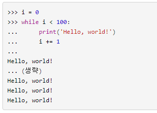 파이썬에서 무한 루프는 while문으로 구현할 수 있다.