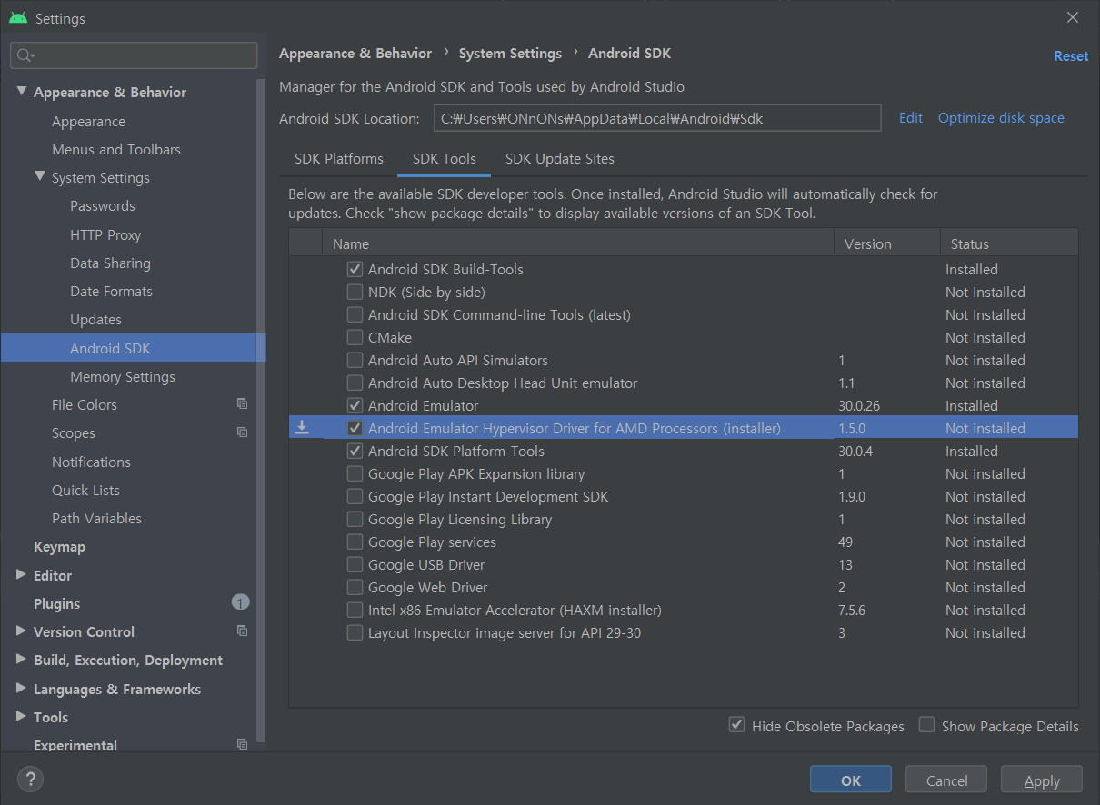 SDK 인스톨 오류