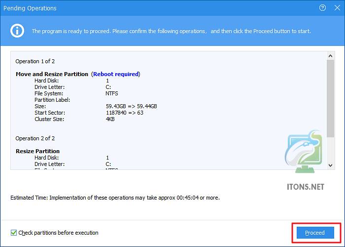 그럼 이따가 파티션 리사이즈 및 병합하기 위한 작업 과정을 보여줍니다. Proceed 버튼을 누릅니다.