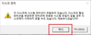 시스템 파일 관련 경고가 뜹니다. 예 버튼