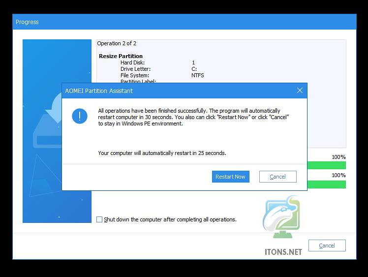 재부팅되면 Windows PE 로 부팅되면서 최종적으로 C 드라이브 하나로 합치기가 시작됩니다.