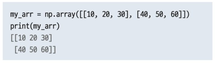 넘파이 배열 출력은 보기 좋게 행과 렬을 구분해서 2차원으로 표현해준다
