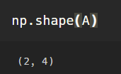 행렬의 차원을 확인할 수 있는 메소드이며, np.shape(행렬) 뿐만 아니라 행렬.shape 방식으로도 사용 가능합니다.