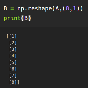 print(A.reshape(-1, 1).shape) # (8, 1)