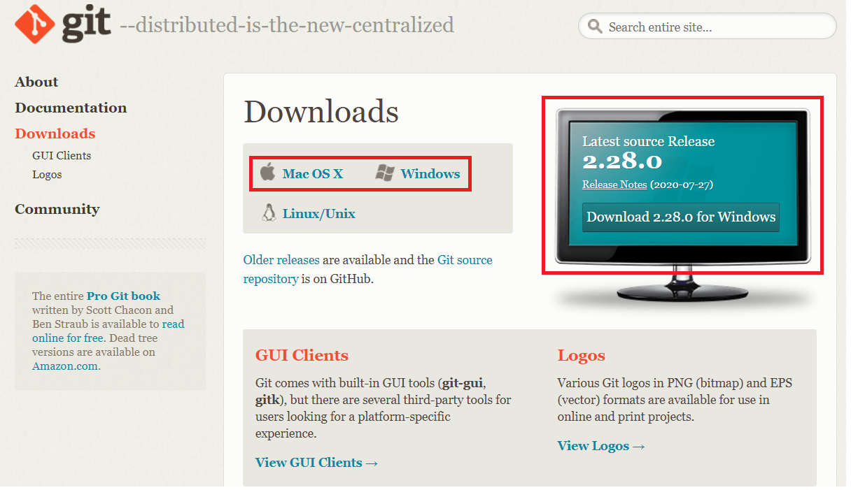 Downloads Mac OS X Windows Linux/Unix Older releases are available and the Git source repository is on GitHub. GUI Clients Git comes with built-in GUI tools (git-gui, gitk), but there are several third-party tools for users looking for a platform-specific