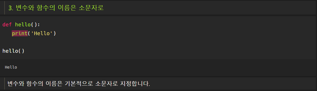 < 변수 / 함수 이름은 소문자 >