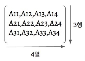 줄수, 열은 가로줄 수 를 나타낸다. 아래는 3x4 (3행4열) 행렬이다.