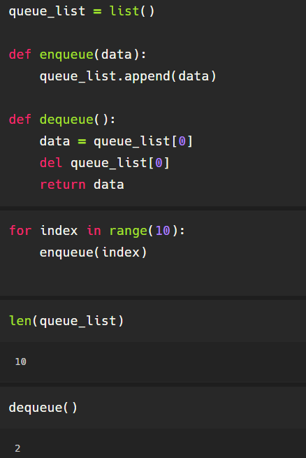 리스트 변수로 큐를 다루는 enqueue, dequeue 기능 구현해보기