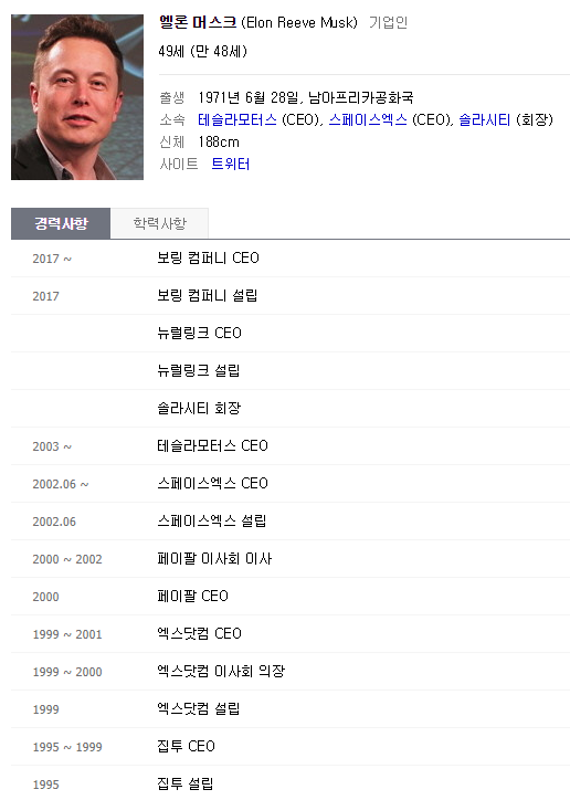 일론 머스크의 프로필