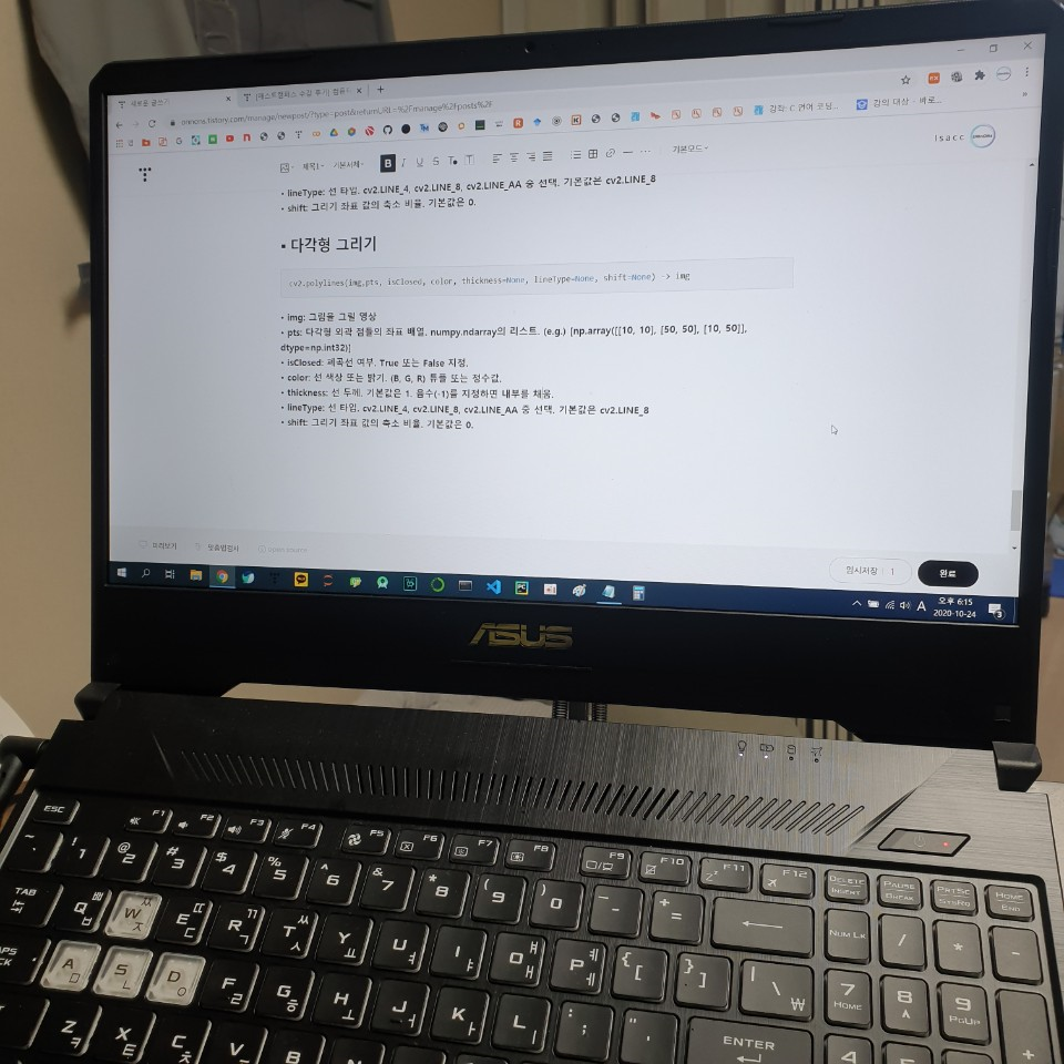 • pts: 다각형 외곽 점들의 좌표 배열. numpy.ndarray의 리스트. (e.g.) [np.array([[10, 10], [50, 50], [10, 50]], dtype=np.int32)]