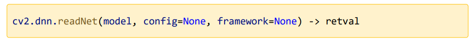 • retval: 지정한 레이어의 출력 블롭. 네트워크마다 다르게 결정됨.