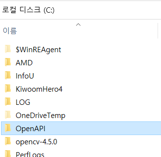 완료하게 되면 C 드라이브에 OpenAPI 폴더가 형성된다