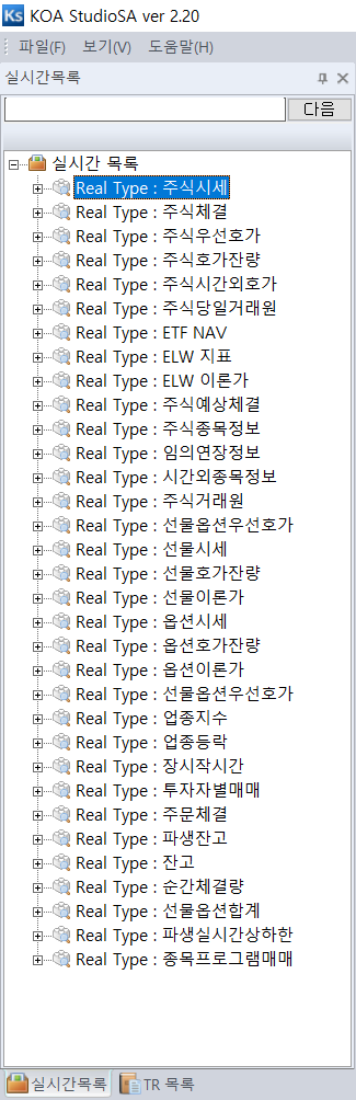 키움에서 실시간으로 보내주는 데이터를 읽어들임