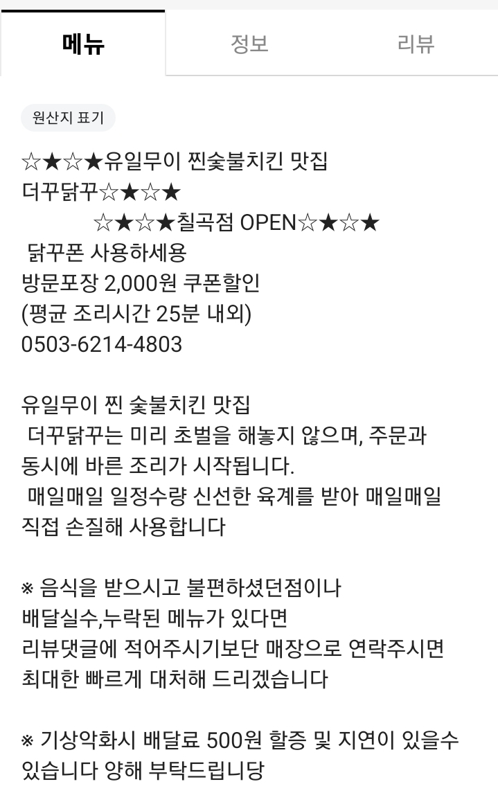 더꾸닭꾸숯불두마리치킨 칠곡점 : 네이버