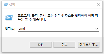 2. 명령창에 cmd 를 입력하신 후 실행